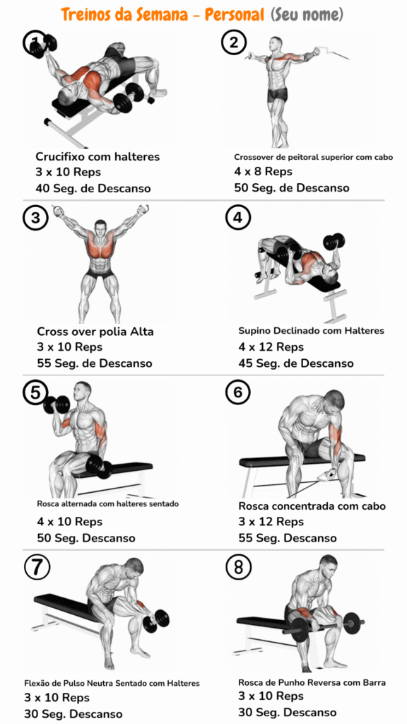 Você pode personalizar sua própria planilha com os GIFS do Anatomia Fitness para enviar para os seus alunos